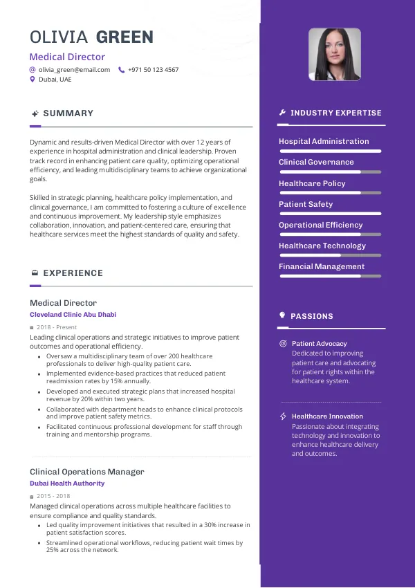 As a Medical Director in 2026, responsibilities will expand to include oversight of digital health initiatives and data-driven patient care strategies. This evolution not only signals a higher level of seniority but also demonstrates your economic contribution to healthcare efficiency and patient outcomes. A well-crafted TrueCV resume can effectively showcase these evolving responsibilities, aligning with Golden Visa evaluation standards.