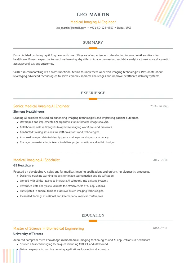 Resume Examples for Medical Imaging AI Engineers
