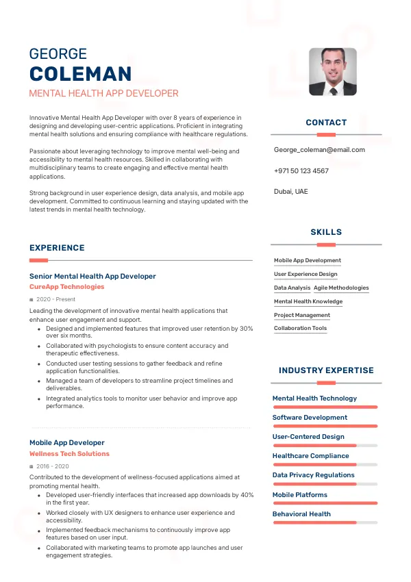 Resume Examples for Mental Health App Developers