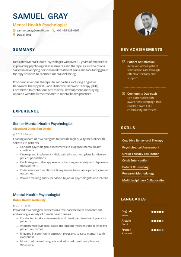 Resume Examples for Mental Health Psychologists