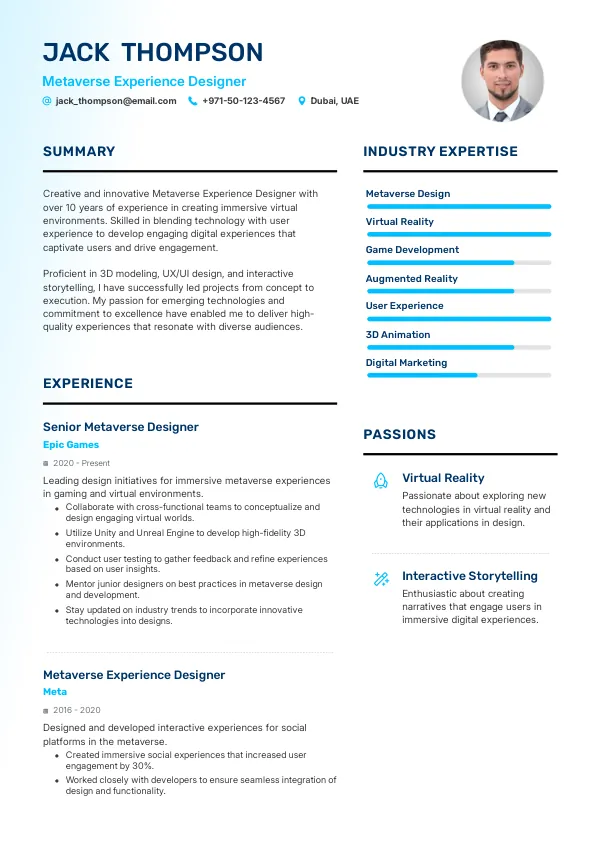 Resume Examples for Metaverse Experience Designers