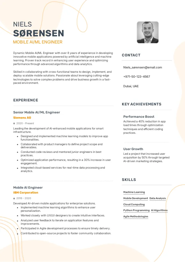 Resume Examples for Mobile AI/ML Engineers