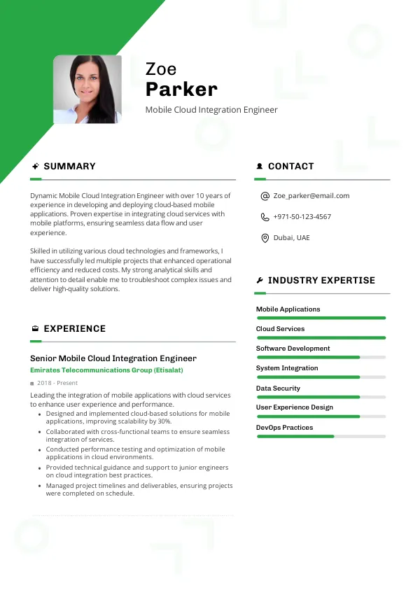 Resume Examples for Mobile Cloud Integration Engineers