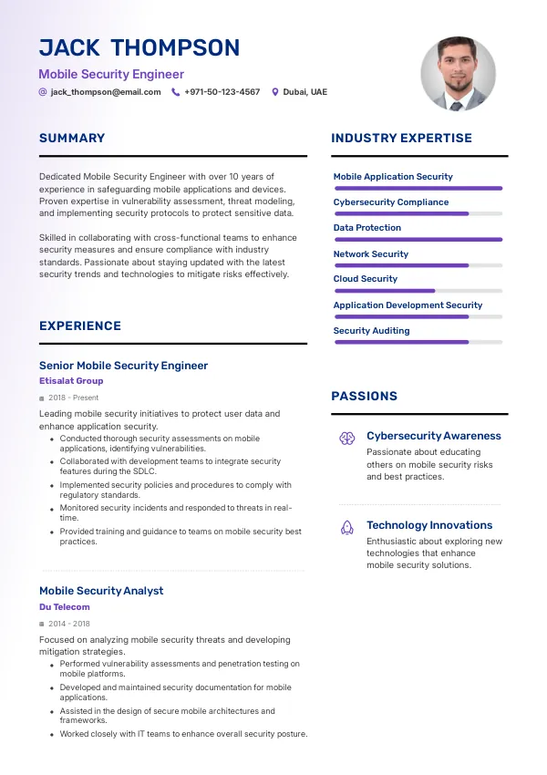 Resume Examples for Mobile Security Engineers