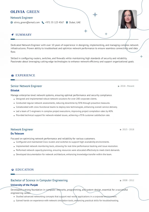 As a Network Engineer, your skills are in high demand across the UAE, especially with the UAE Green Visa initiative aimed at attracting skilled professionals. Under the UAE’s 2025 Residency and Visa Pathways, Network Engineers are eligible for residency based on their expertise in technology and communications. This visa offers a pathway for professionals to live and work in the UAE, making it essential to present yourself effectively through a standout resume.