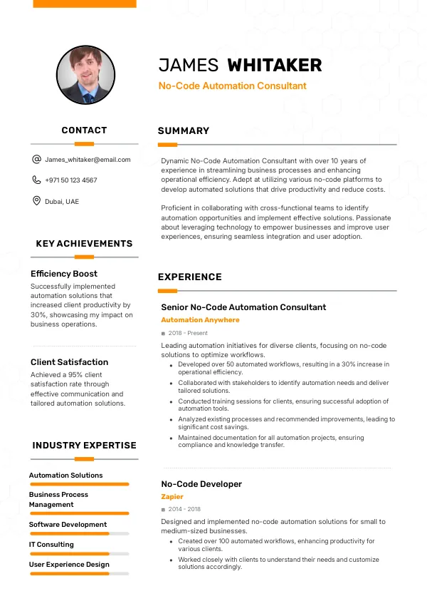 Resume Examples for No-Code Automation Consultants