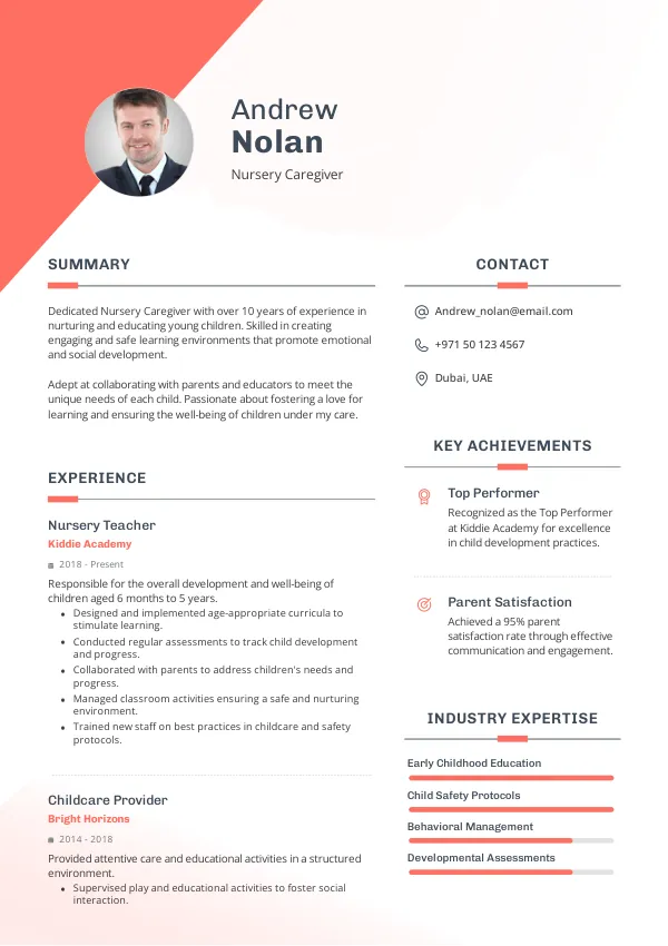 - Create UAE visa-compliant Nursery Caregiver resumes aligned with the UAE Work Residency Visa requirements.