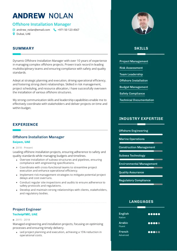 Resume Examples for Offshore Installation Managers