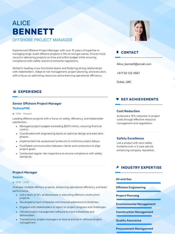 In 2026, the role of Offshore Project Manager in the Maritime Logistics industry undergoes significant transformation driven by advancements in digital logistics platforms and automation tools. The integration of AI-driven decision-making systems enhances project oversight, making the role more strategic than ever. As expectations shift towards greater efficiency and accountability, a TrueCV-optimized resume can effectively highlight your adaptability to these new demands.