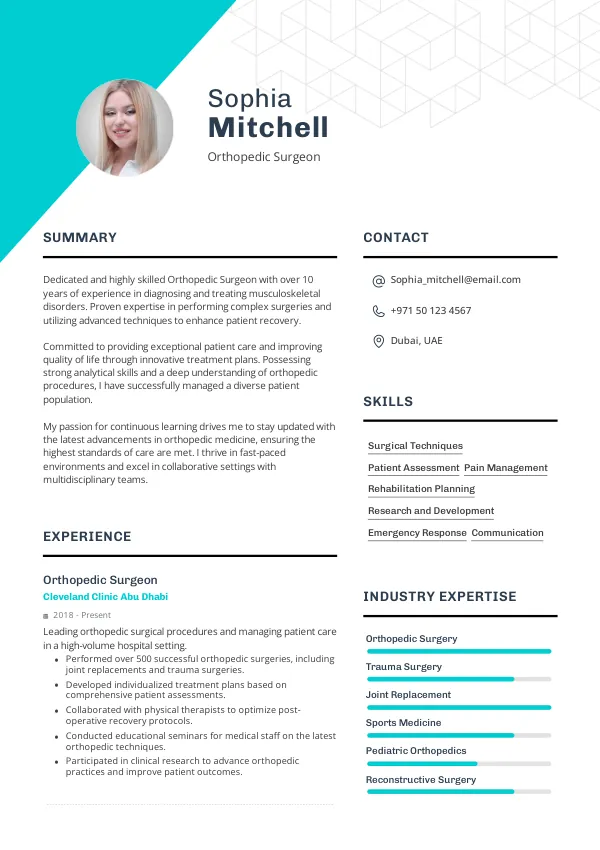 Leading healthcare institutions in the UAE, such as Cleveland Clinic Abu Dhabi, Mediclinic, and NMC Healthcare, are actively seeking Orthopedic Surgeons in 2026. Their focus on advanced healthcare delivery and patient outcomes underscores the importance of senior roles in supporting long-term residency and Golden Visa pathways. Highlighting your experience with reputable employers in your resume can strengthen your seniority signaling.