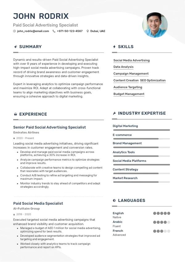 Resume Examples for Paid Social Advertising Specialists