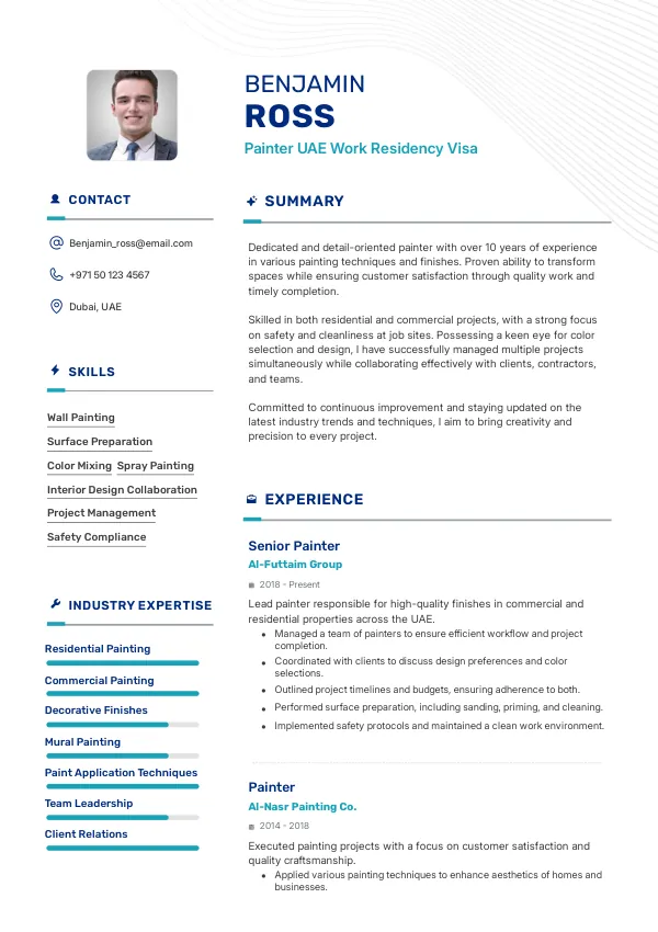 - Create a UAE visa-compliant CV & Resume aligned with Painter – UAE Work Residency Visa requirements.
