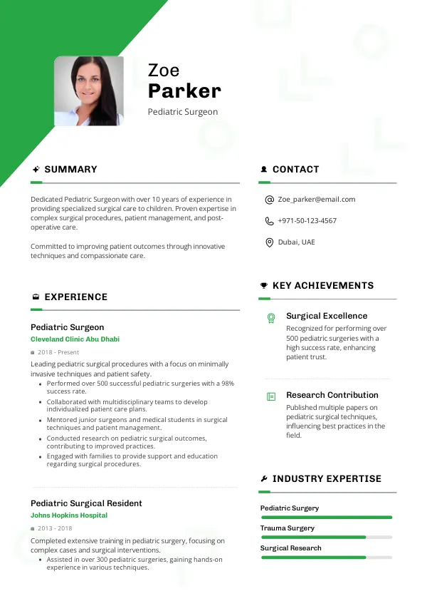 Leading healthcare institutions in the UAE, such as Abu Dhabi Health Services Company (SEHA), Dubai Health Authority, and Mediclinic International, are ramping up their recruitment of Pediatric Surgeons in 2026. These employers are seeking candidates who are not only technically proficient but also adaptable to new healthcare technologies and practices. A TrueCV-optimized resume can help you align your qualifications with their specific hiring needs.