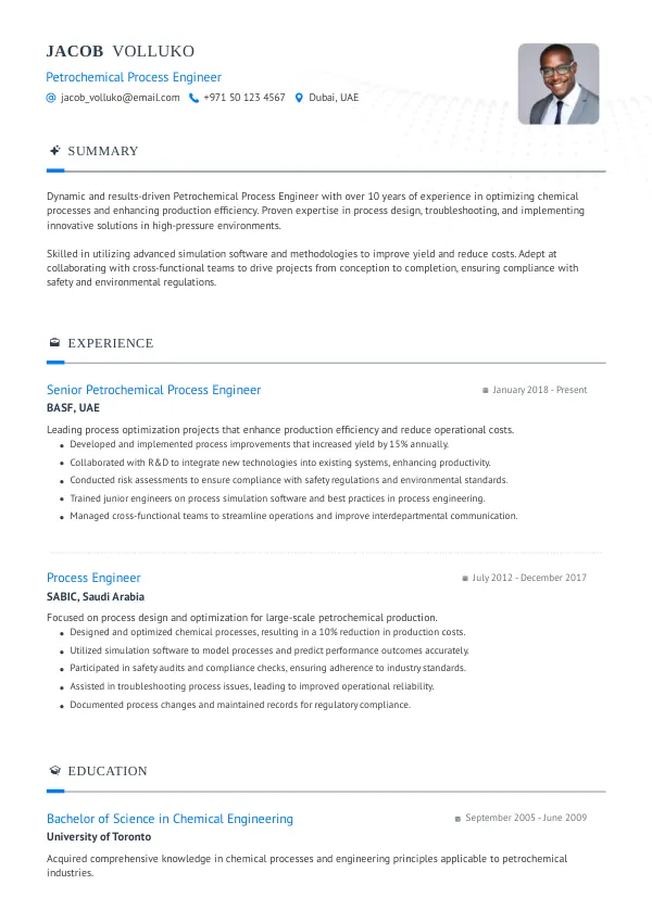 Resume Examples for Petrochemical Process Engineers