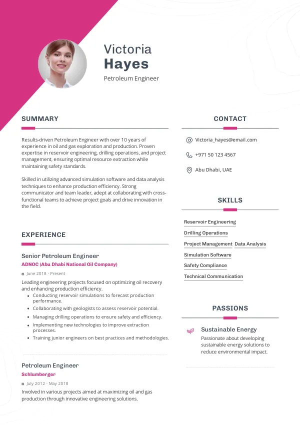 The demand for Petroleum Engineers in 2026 is driven by the UAE's commitment to diversifying its energy portfolio and increasing investments in renewable energy sources alongside traditional oil and gas. The adoption of advanced technologies such as AI-driven exploration tools and IoT for real-time monitoring will create a surge in hiring as companies seek engineers who can leverage these innovations. A TrueCV-optimized resume can effectively highlight a candidate's experience with these technologies, making them more appealing to potential employers.