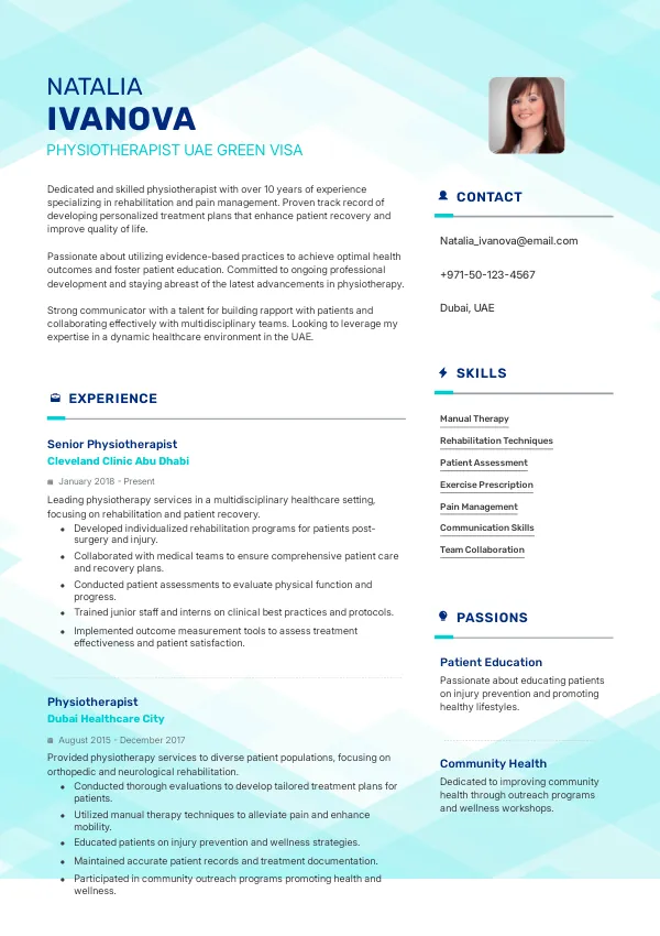 - Create a UAE visa-compliant Physiotherapist CV aligned with Green Visa requirements.