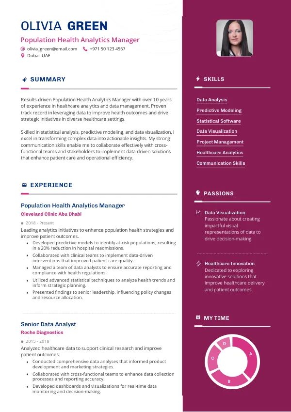 The healthcare technology sector in the UAE is projected to remain stable, with ongoing investments in digital health solutions. This stability will create a favorable environment for Population Health Analytics Managers, enhancing their employability. A well-crafted TrueCV resume can help candidates navigate visa processes and highlight their value to potential employers.