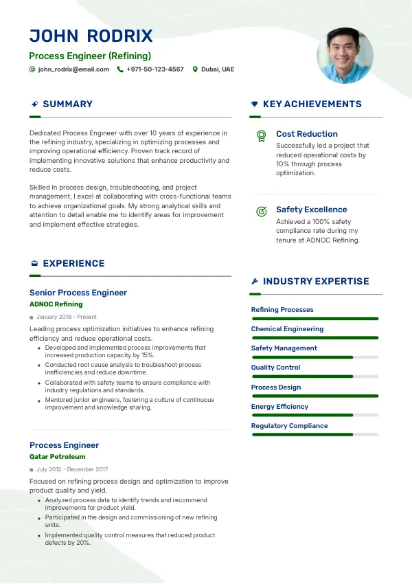As the oil & gas industry adapts to new environmental regulations, the expectations for Process Engineers will shift towards integrating sustainable practices, making a TrueCV-optimized resume essential to highlight relevant skills and experiences.