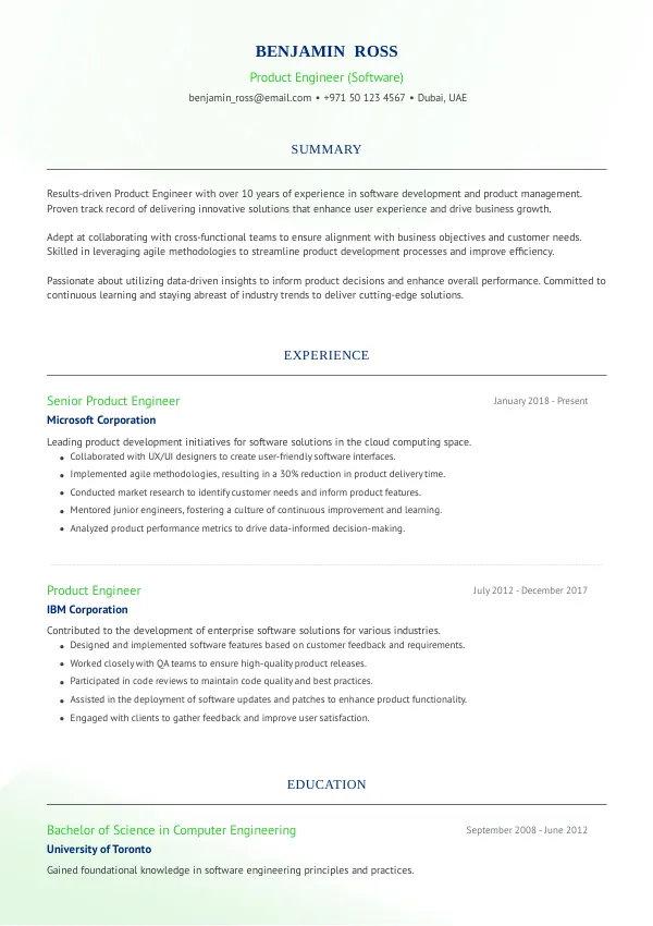Build My Product Engineer (Software) ResumeEvolving Responsibilities of Product Engineers
