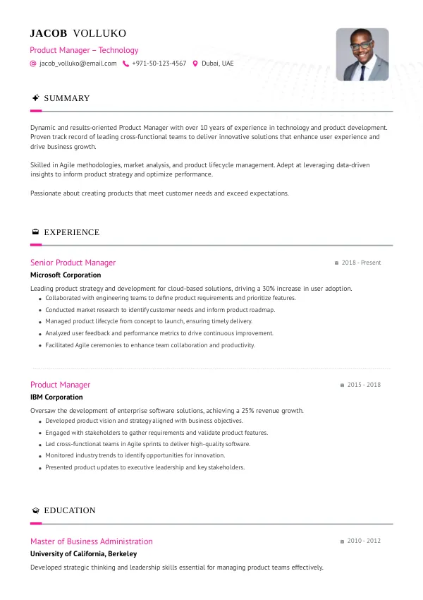 Resume Examples for Product Managers