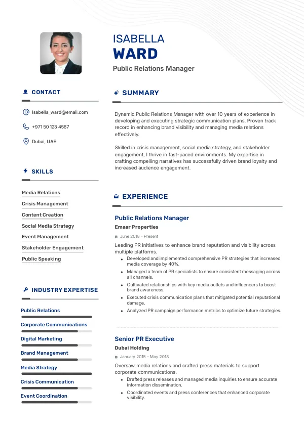 Position yourself for success as a Public Relations Manager in 2026 with TrueCV. Our services will help you align your resume with industry expectations while enhancing your appeal for long-term residency options like the Golden Visa.