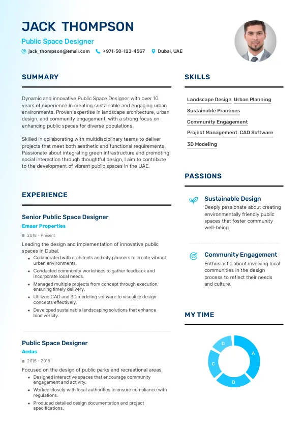 In 2026, the role of Public Space Designer is set to evolve significantly, driven by advancements in smart city technologies and sustainable design principles. As urban areas in the UAE continue to grow, the emphasis on creating inclusive, multifunctional public spaces will redefine the responsibilities of this role. A TrueCV-optimized resume will help candidates align their skills with these new expectations, enhancing their chances of standing out in a competitive job market.