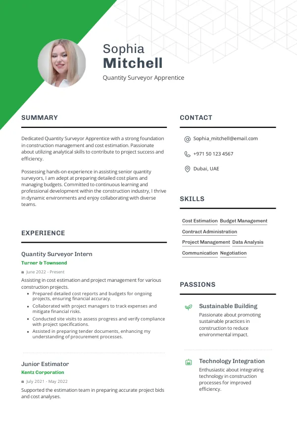 Resume Examples for Quantity Surveyor Apprentices