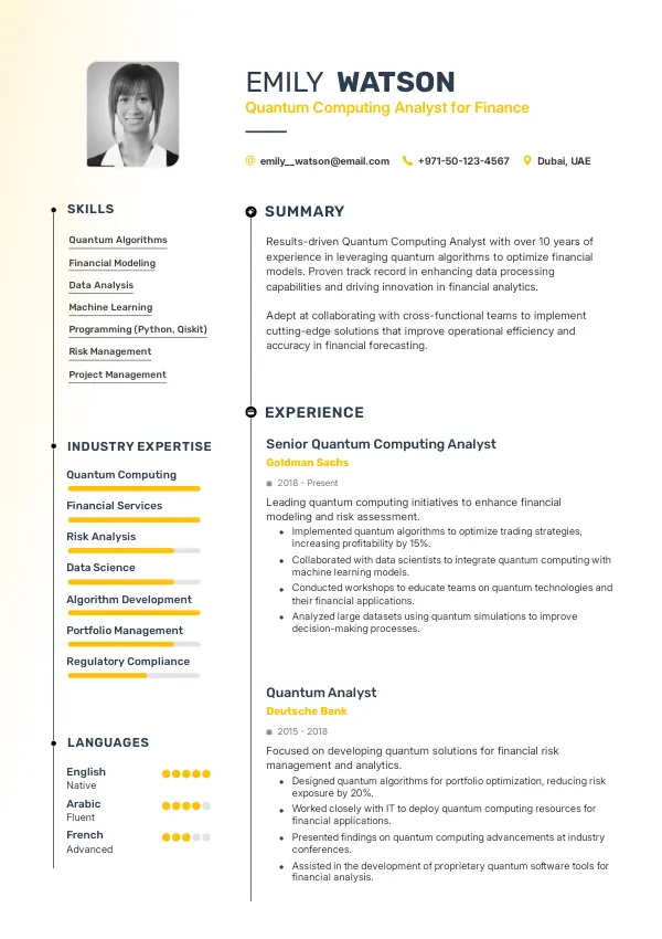 Build My Quantum Computing Analyst for Finance ResumeEvolving Responsibilities of Quantum Computing Analysts