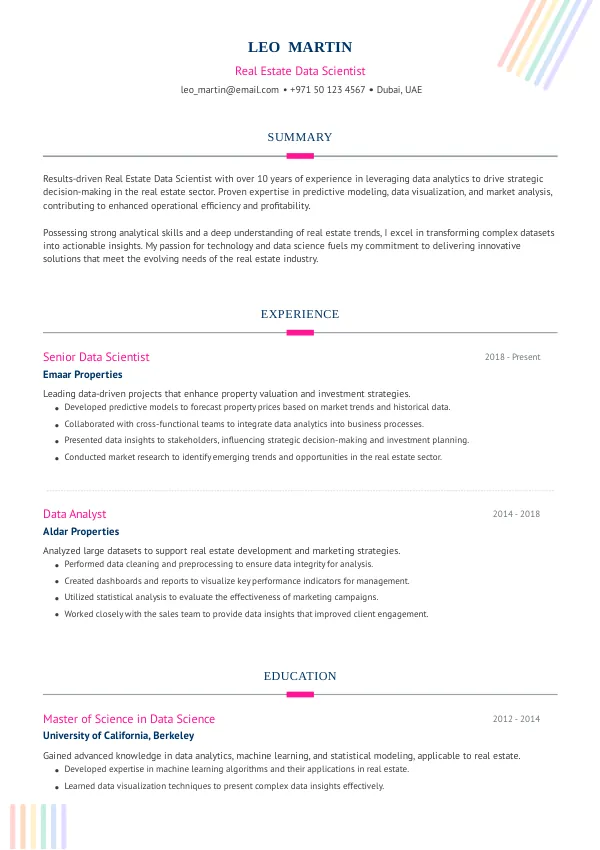 Resume Examples for Real Estate Data Scientists