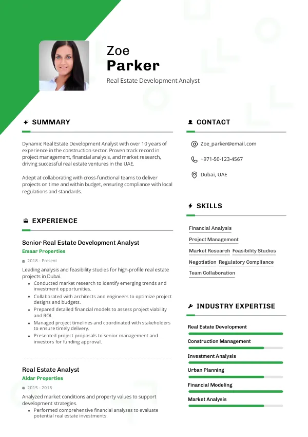 The UAE's commitment to major infrastructure projects ensures a stable job market for Real Estate Development Analysts in 2026. Employers are increasingly looking for candidates who can navigate the complexities of international regulations and project financing. A TrueCV-optimized resume will position you as a strong candidate in this competitive landscape.