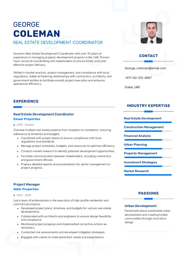 With the UAE's ongoing investments in urban development, the job market for Real Estate Development Coordinators is expected to remain stable. Employers are likely to offer competitive visa sponsorships to attract top talent. A well-crafted TrueCV resume can enhance your employability and stability in this dynamic market.