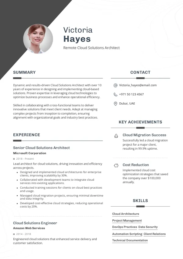 Resume Examples for Remote Cloud Solutions Architects