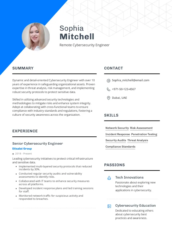 - Achievement: Successfully implemented AI-driven security protocols, reducing incident response time by 30%.