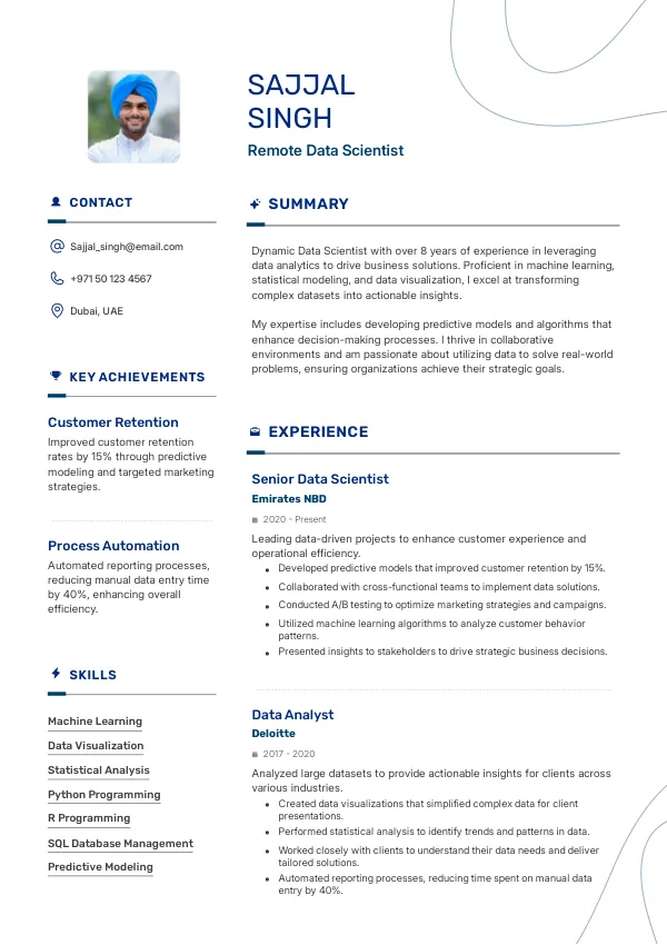 With the UAE's commitment to becoming a global tech hub, the employability of Remote Data Scientists is expected to remain strong in 2026. The government’s initiatives to attract foreign talent and support tech startups will contribute to career stability in this field. Candidates should emphasize their adaptability and relevant experience in their TrueCV resumes to enhance their marketability.