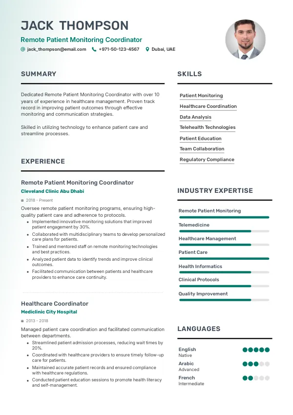 Resume Examples for Remote Patient Monitoring Coordinators