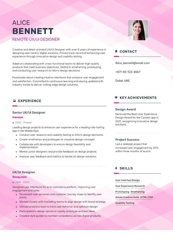 Resume Examples for Remote UX/UI Designers