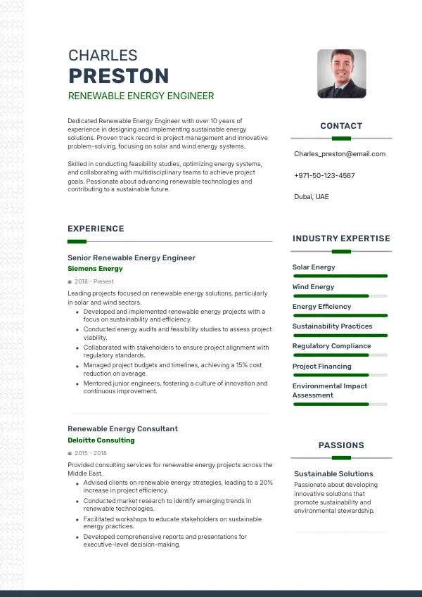 The renewable energy sector is projected to remain robust in 2026, providing stable employment opportunities for engineers. The UAE's focus on sustainable energy solutions will create a favorable environment for skilled professionals. Candidates should ensure their resumes reflect their adaptability and readiness for international opportunities, leveraging TrueCV for optimal presentation.