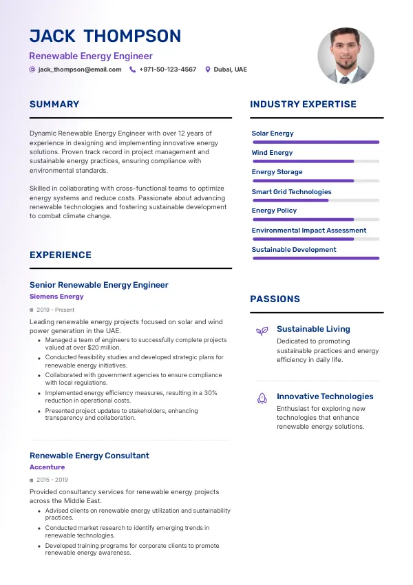As a Renewable Energy Engineer in UAE, you play a crucial role in designing and implementing sustainable energy solutions. This growing field offers immense opportunities but also competition. A robust CV & resume is essential to stand out.