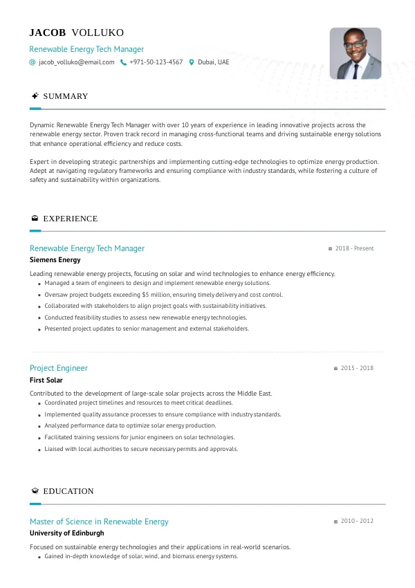 Build My Renewable Energy Tech Manager ResumeEvolving Responsibilities of Renewable Energy Tech Managers in 2026