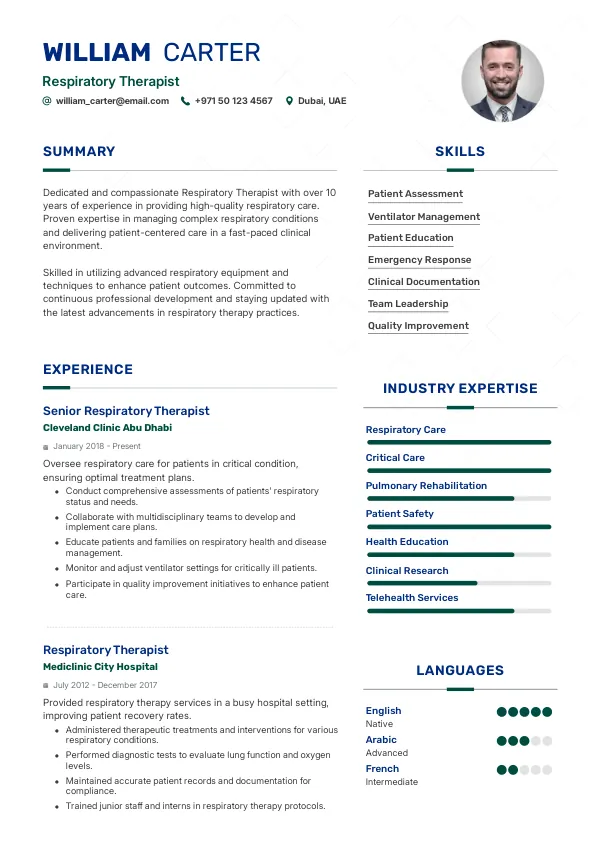 In 2026, the role of the Respiratory Therapist in the UAE will expand significantly, integrating advanced telehealth technologies and AI-driven diagnostic tools. These advancements will redefine patient care, emphasizing remote monitoring and personalized treatment plans. A TrueCV-optimized resume will highlight your adaptability to these changes, making you a more attractive candidate.