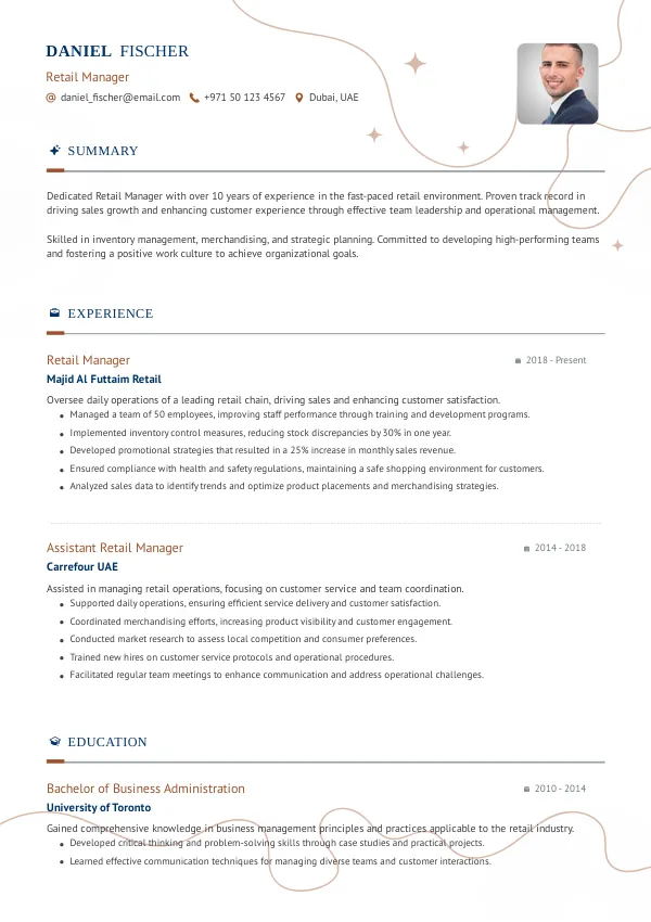 - Achievement: Increased store sales by 15% through effective promotional strategies.