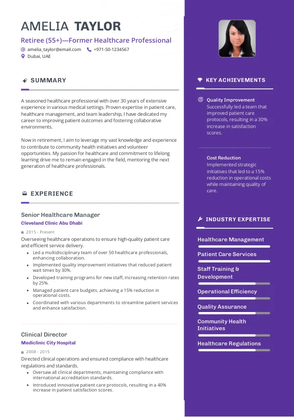 - Visa Experience Alignment: We ensure your resume meets the specific requirements for Retirees (55+) under the UAE Retirement Visa.