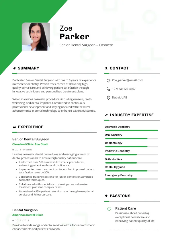 As the demand for Senior Dental Surgeons grows in 2026, now is the time to align your resume with industry expectations and explore Golden Visa pathways for long-term residency in the UAE.