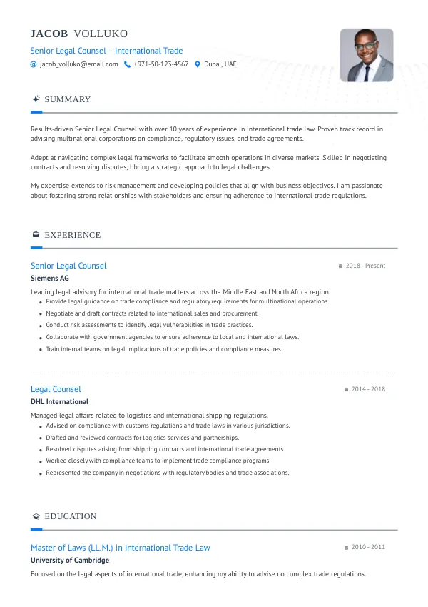 As the role of Senior Legal Counsel in International Trade evolves, ensure your resume reflects the latest industry expectations with TrueCV. Prepare to navigate a dynamic legal landscape in the UAE.