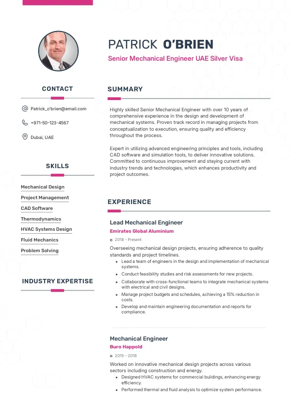 Don't miss out on the opportunity to enhance your career in the UAE. Get a professionally crafted Senior Mechanical Engineer – UAE Silver Visa Resume from Truecv today!