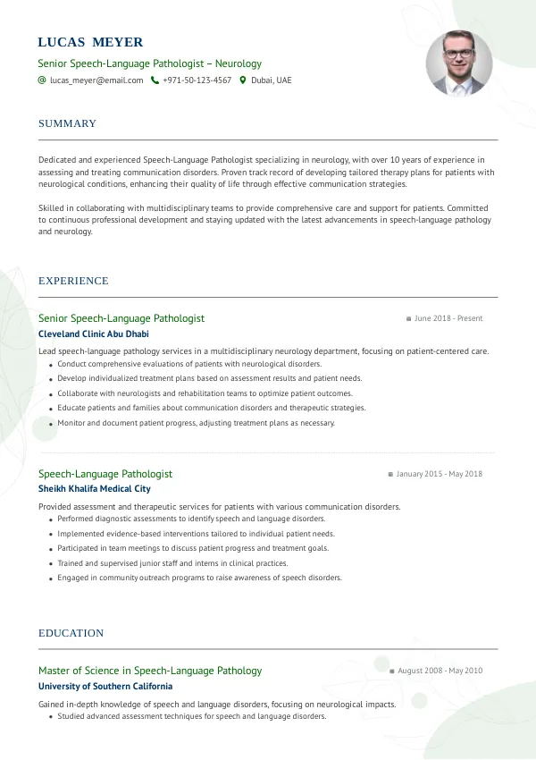 As the field evolves, Senior Speech-Language Pathologists in 2026 will need to master new tools such as virtual reality therapy applications and advanced speech analysis software. These emerging skills not only enhance your professional profile but also align with Golden Visa considerations by demonstrating your economic contribution to the healthcare sector.