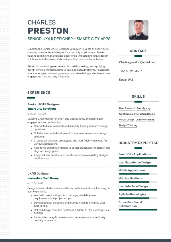 Build My Senior UX/UI Designer – Smart City Apps ResumeEvolving Responsibilities of Senior UX/UI Designers