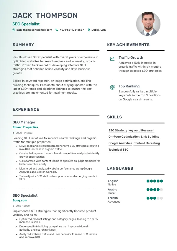 Position yourself for success in 2026 as an SEO Specialist with TrueCV. Enhance your resume to reflect your seniority and contributions, supporting your long-term residency and Golden Visa aspirations.
