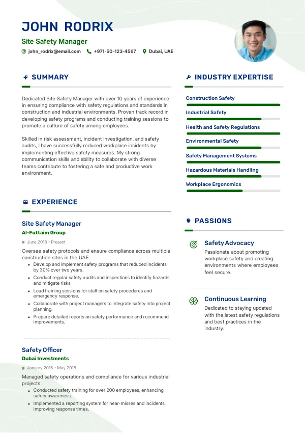 The construction industry in the UAE is projected to grow, providing a stable job market for Site Safety Managers. As companies invest in safety compliance and technology, the need for qualified professionals will remain strong. A TrueCV that emphasizes your relevant experience and adaptability will enhance your chances of securing a position in this stable environment.