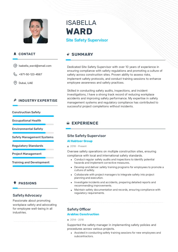 The construction industry's growth in the UAE signals strong career stability for Site Safety Supervisors in 2026. The government's commitment to infrastructure development ensures a continuous demand for skilled professionals, enhancing job security. Additionally, favorable visa policies for skilled workers will further support career opportunities. A TrueCV-optimized resume can help you stand out in this competitive job market.